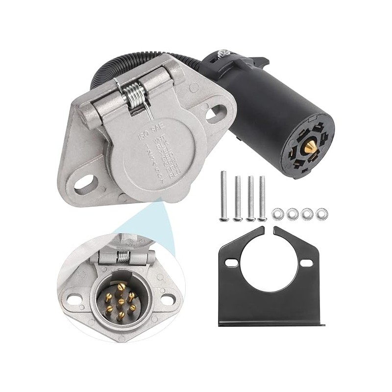 MECMO 7-Way RV Blade to 7 Way Round Pin Trailer Adapter Connector, Die-cast Zinc with Mounting Bracket, 7 RV to 7 Pole Pin Trailer Socket Plug Harness for Towing Commercial, Agricultural, Farm Trailer