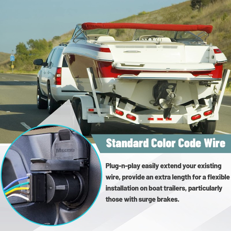 MECMO Extensión de cable de remolque plano de 5 vías de 48 pulgadas, calibre 18 para lado del vehículo y lado del remolque, arnés de cableado plano de 5 pines, utilizado para remolque de barco con frenos de sobretensión