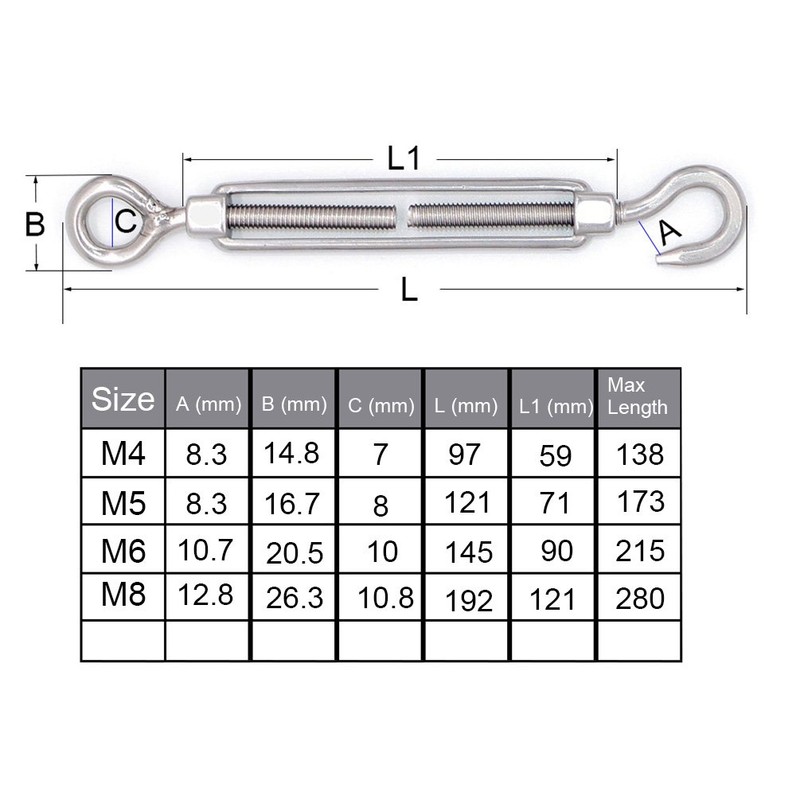 • Wide application: Great for adjusting the tension or length of cables, ropes, tie rods and other tensioning systems. Widely applied for both indoor and outdoor uses .