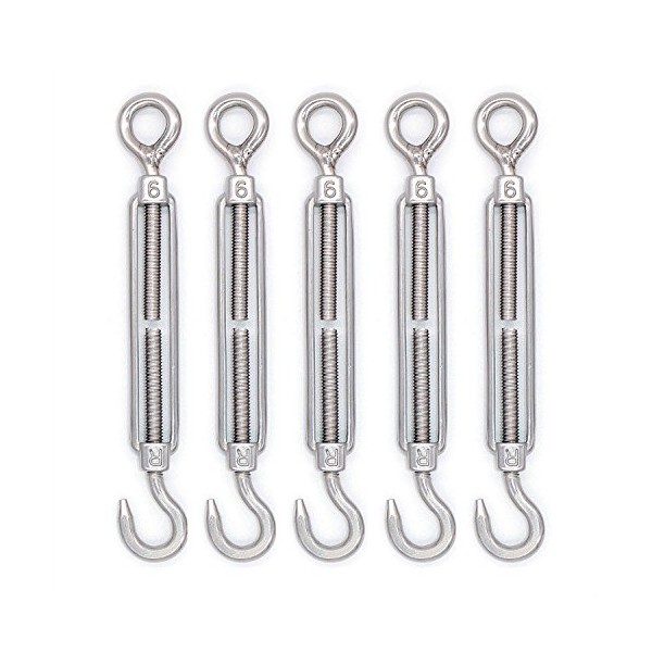 Mecollection 10pcs M6 Stainless Steel 304 Hook & Eye Turnbuckle Hook Wire Rop...