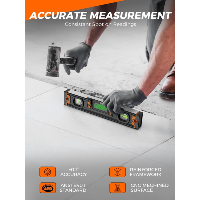- 【Great Gift】The Mecurate Digital Level is not only a professional-grade leveler tool for handicraftsmen, builders, and plumbers but also an excellent gift choice for DIY enthusiasts. Whether you're hanging shelves, installing fixtures, or aligning surfaces, this tool provides precise leveling assistance. Additionally, it comes with a convenient carrying case to protect your digital level, allowing for easy portability wherever you go.