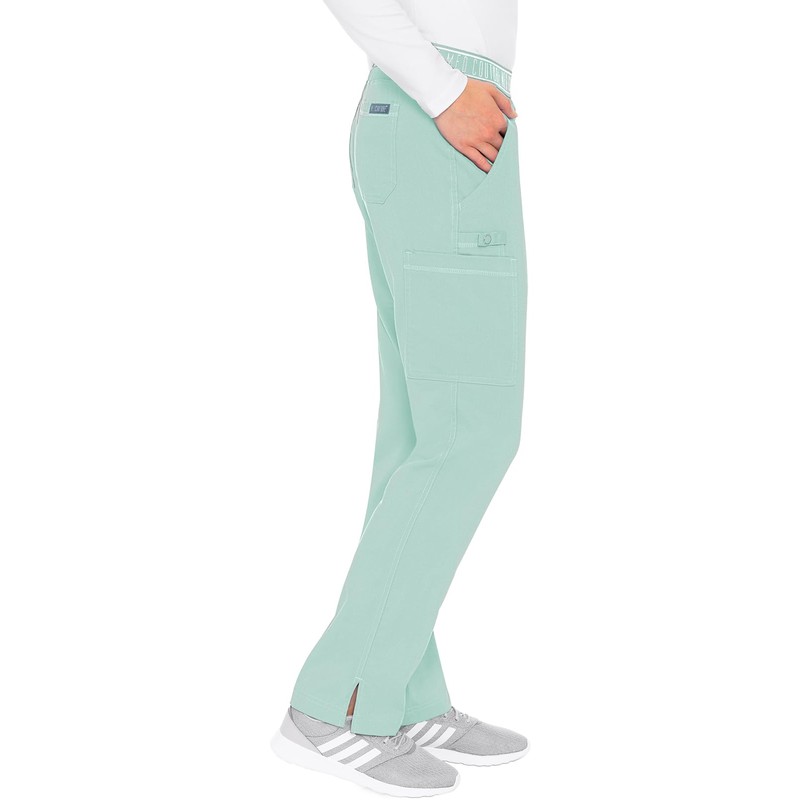 Med Couture Women's Yoga Pull-On Pant with 7 Pockets Ultra-Soft Rib-Knit Waistband and 2-Way Stretch Technology Plus Size - MC7739, 3XL, Sea Mist