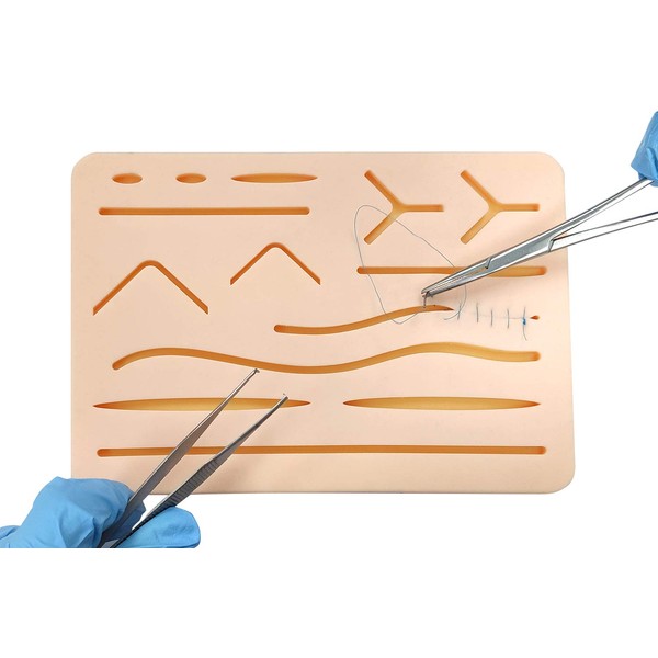 PRE-CUT SCRATCHES DESIGN: The suture pad can be used for various training and include straight scratches, curved scratches, peaching, ripping, and staying.
