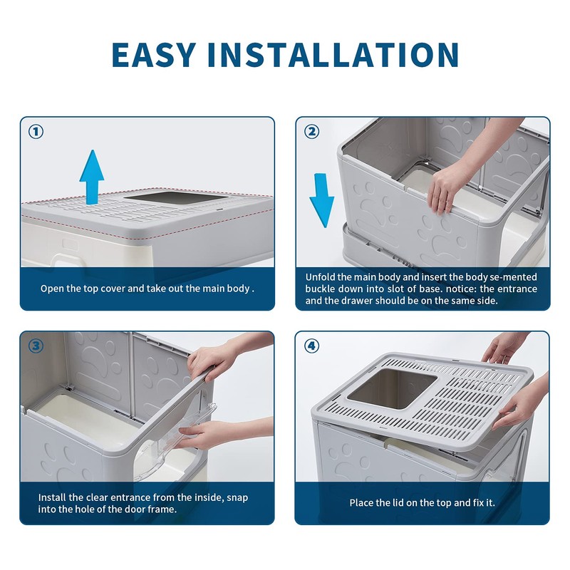 - [Environment Friendly Product] - The cat litter box with lid is made of stain resistant plastic. It can be flexibly folded and easy to clean, providing a neat living environment for your cat. The litter mat is made of safe, high quality PVC material that is BPA-Free and Phthalate-Free.