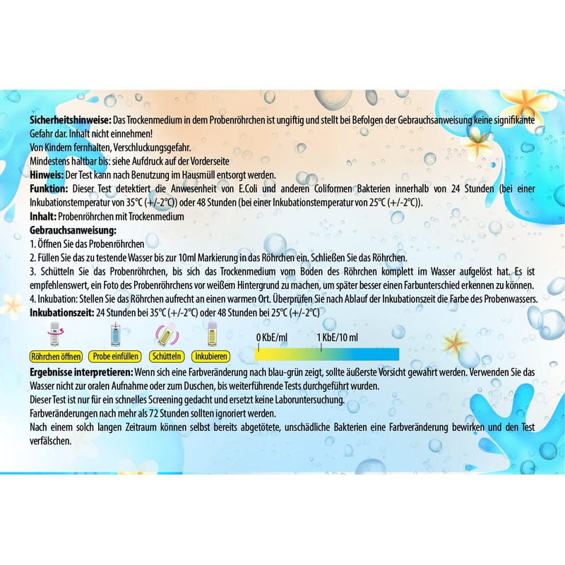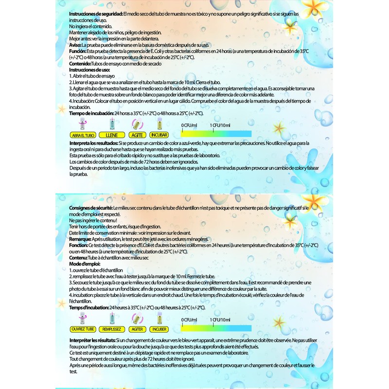 - ✔ [Detection of coliforms and E. coli bacteria] Sample turns blue-green. Results from 1 KbE/10 ml.