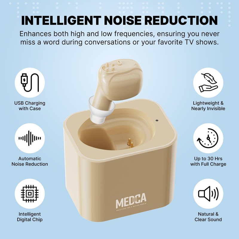 - UNIQUE ITE AMPLIFIER: MEDca mini ITE is a unique hearing amplifier with a special feedback cancellation feature. It offers optimal sound amplification with high sound clarity.