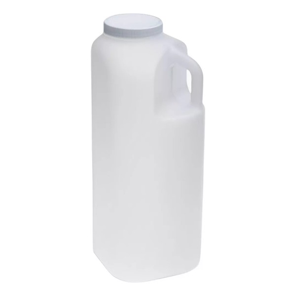 Mide 29.5cm de alto y 11.5cm por lado, está fabricado en polipropileno; estos recipientes son ideales para recolectar muestras durante un periodo de 24 hrs. Ya que su capacidad es de 3 litros, graduados en incrementos de 100ml, tienen la boca amplia para facilitar la adición y la recuperación de la muestra, una tapa especial impide el goteo del recipiente y asegura su transporte.