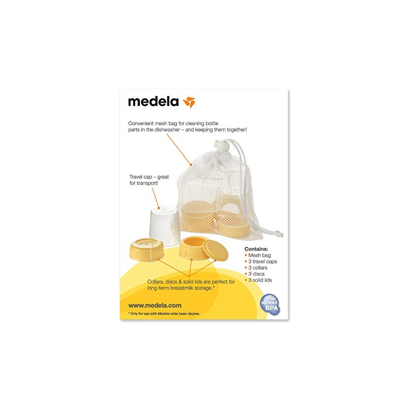 Medela Spare Parts for Breast Milk Bottles, Extra Caps, Lids, Collars, and Discs, Includes Convenient Mesh Bag for Easy Washing, Bottle Spare Parts Made Without BPA