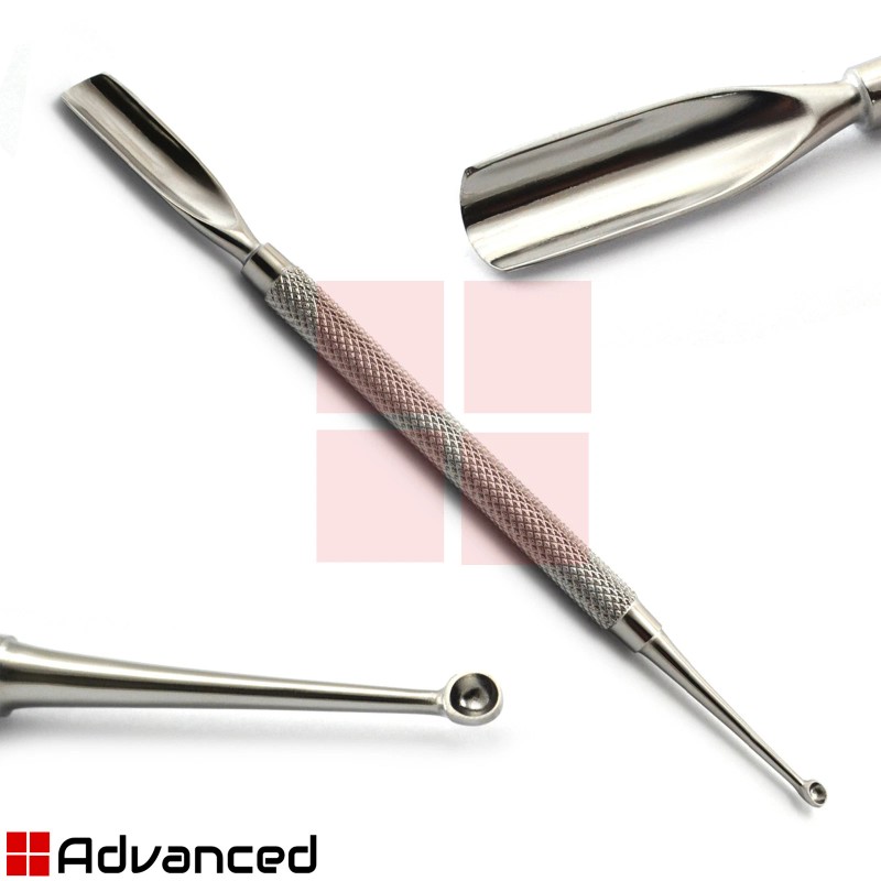 - The spoon-like end (curved-end) is used for pushing cuticles - the design easily helps to shape the cuticles.
