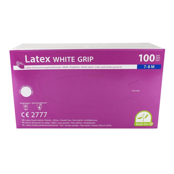 - Medi-Inn Latex White Grip: Powder-free, non-sterile disposable gloves for the medical industry, nursing or the laboratory.