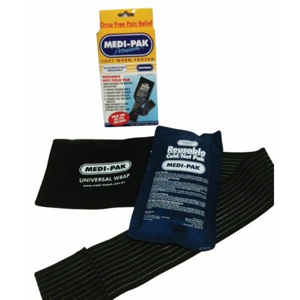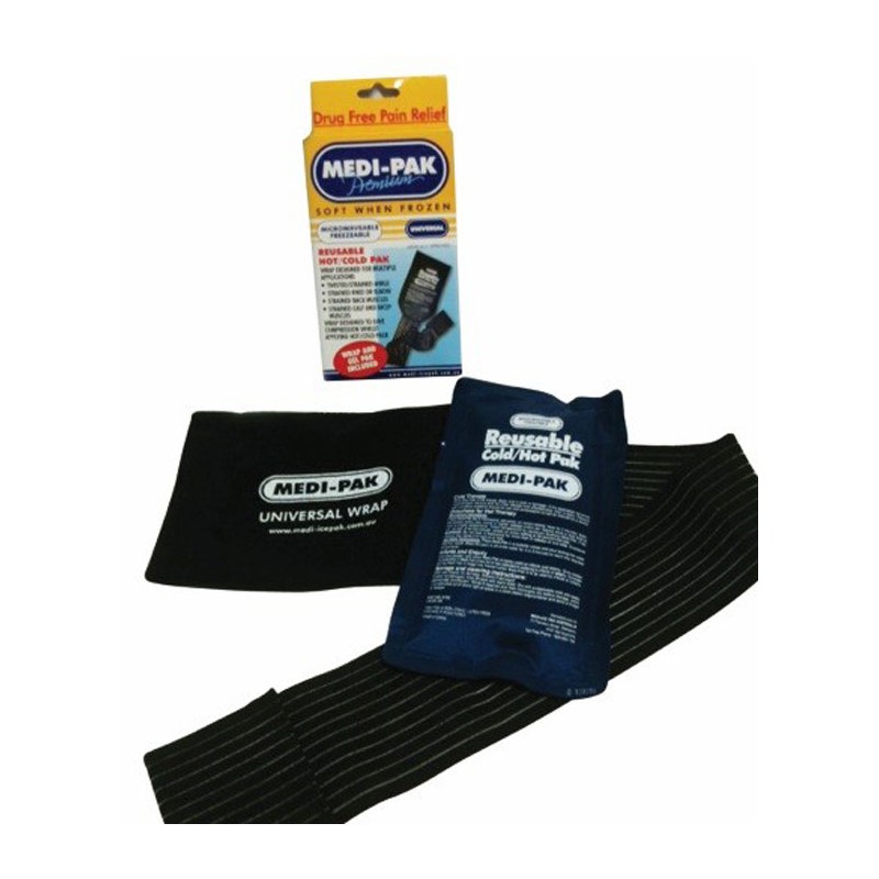 • Medi-Pak Universal Wrap is used for soft tissue injuries, chronic back & joint pain, headaches & fever, minor stings and bites and bruising.