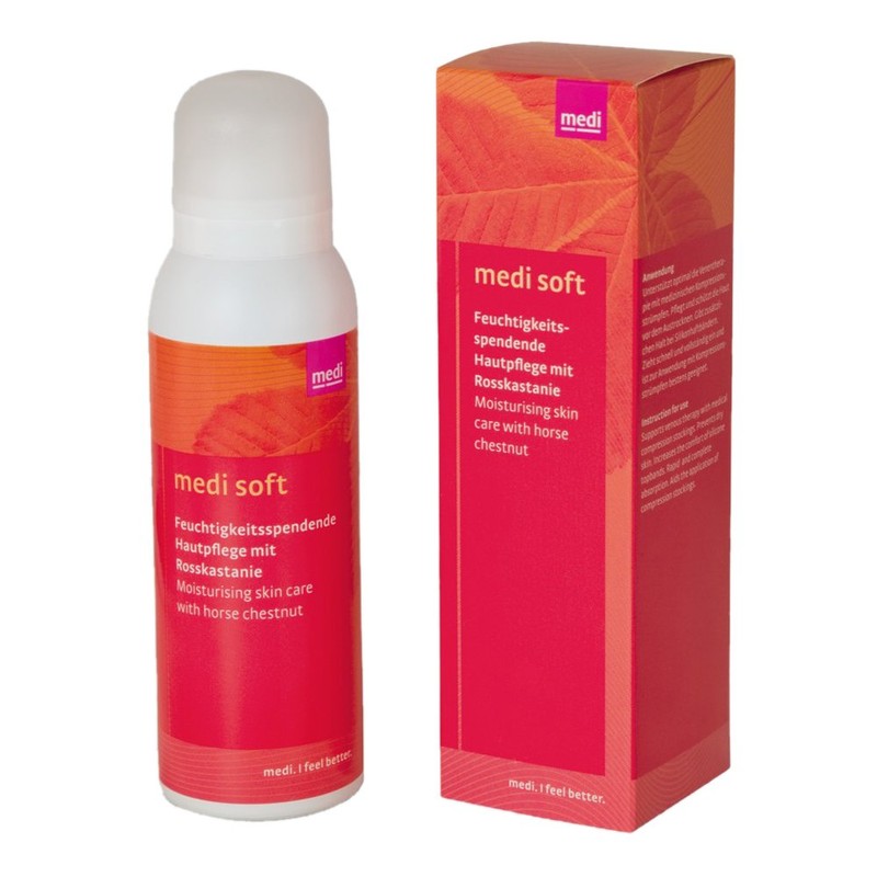 The gentle Medi Soft cream foam is a moisturising skin care for the whole day. It includes horse chestnut that strengthens the vessel wall, and 10% urea, which makes your skin smooth and supple.