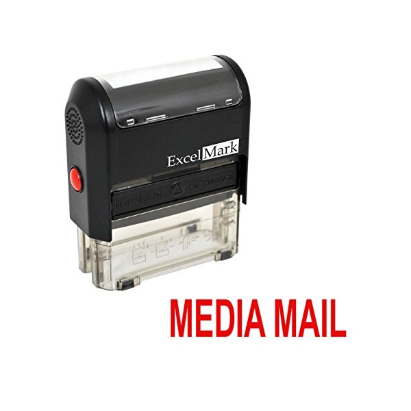 Media Mail Self Inking Rubber Stamp - Red Ink