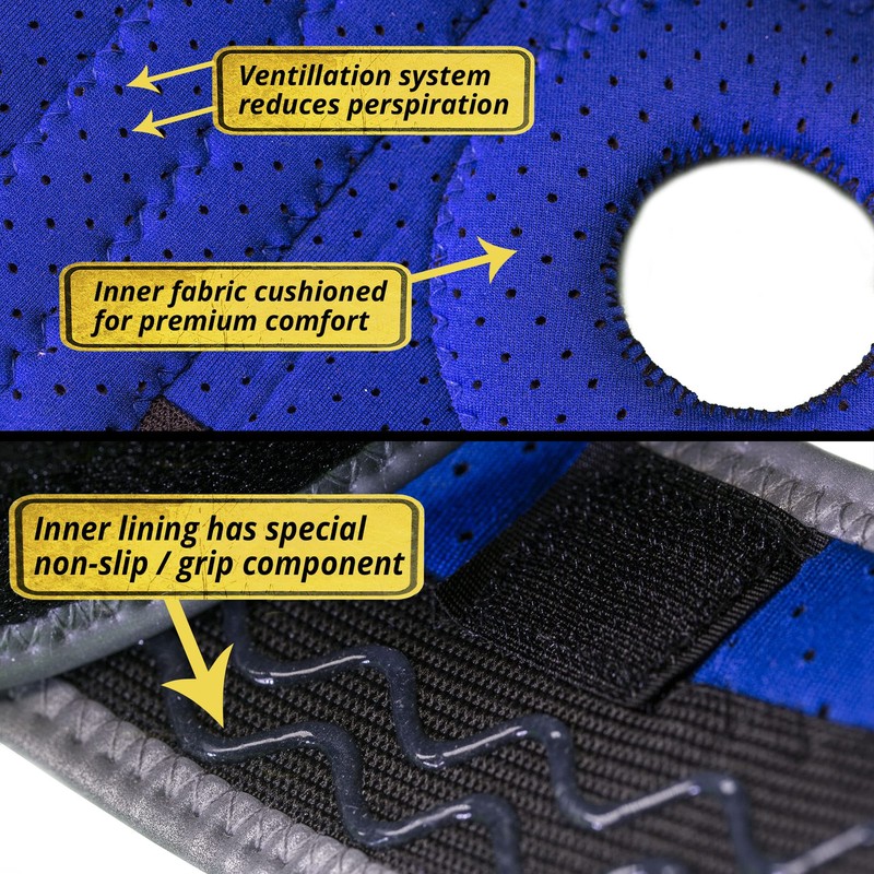 - 🧵 PREMIUM-GRADE MATERIALS: A special gel substance coats the inner lining which grips your leg helping to prevent slippage and keep the knee support brace in place. Breathable premium fabric, high-quality material helps to reduce moisture, odours and itchiness