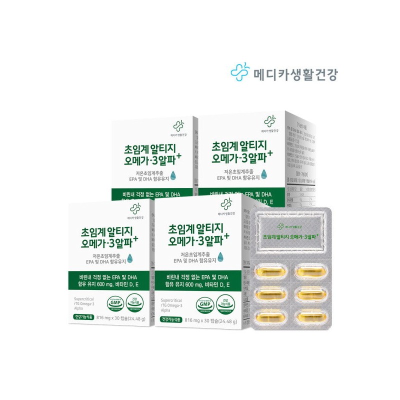 [Medica Korea] Medica Life & Health Supercritical Altige Omega 3 Alpha 30 Capsules 4 Boxes (4) / [메디카코리아] 메디카생활건강 초임계 알티지 오메가3 알파 30캡슐 4박스(4