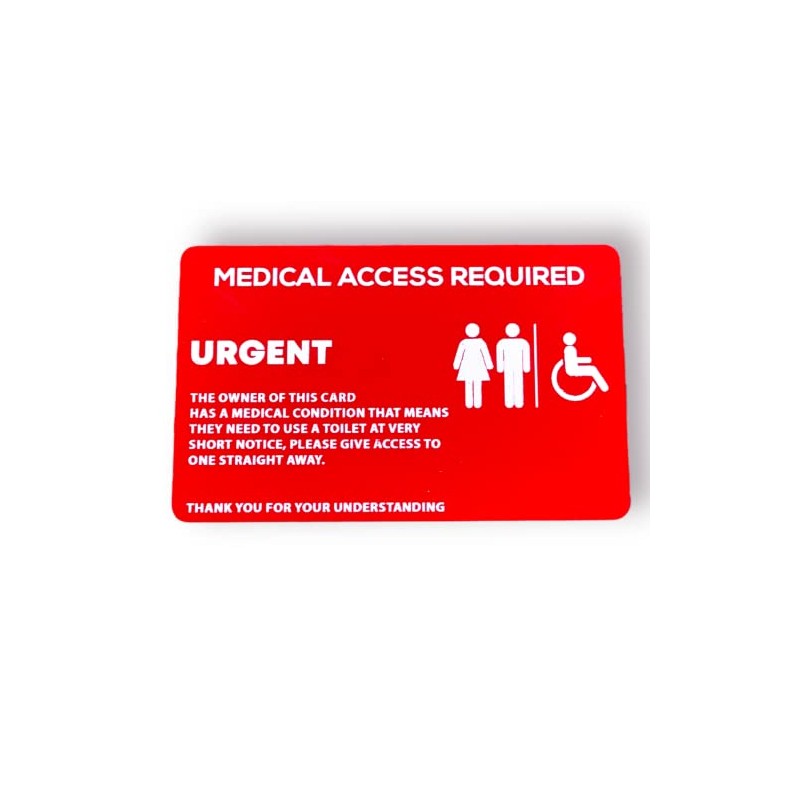 MEDICAL ACCESS CARD, to request urgent use of toilet (bladder / bowel condition) Printed on high quality PVC Card