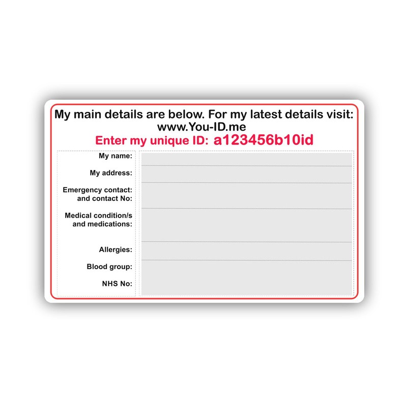 You can use the You-ID.me Service Plan FREE for Life! This means you can log in and make changes at any time with the unique ID and password supplied. You-ID.me is the UK's leading emergency ID service and works wherever there is an internet connection. No app needed.