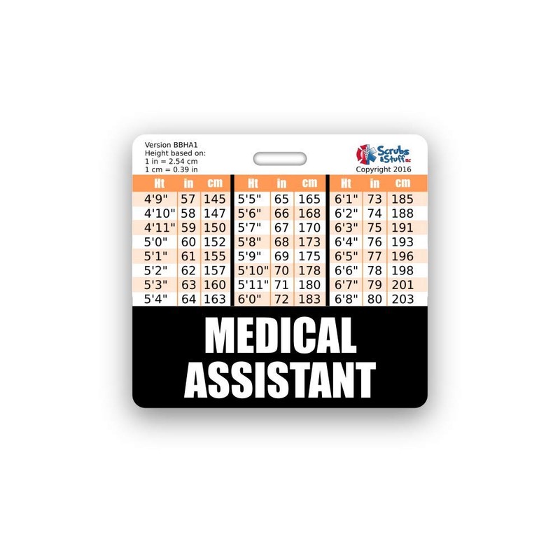 Medical Assistant Badge Buddy Horizontal w/Height & Weight Conversion Charts (Standard, Black)