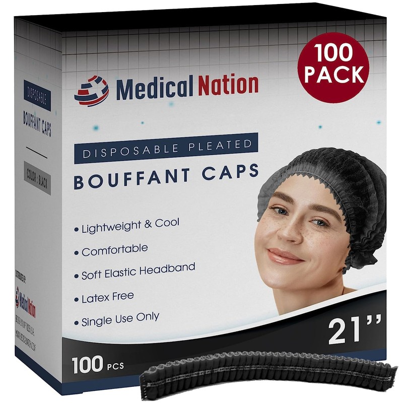 Medical Nation is a premier provider of essential workplace PPE for medical professionals and workers in a variety of fields and lab settings. Our disposable pleated bouffant hair nets are a favorite of employees and staff due to their superior comfort and ability to fit over all hair styles and hair types..