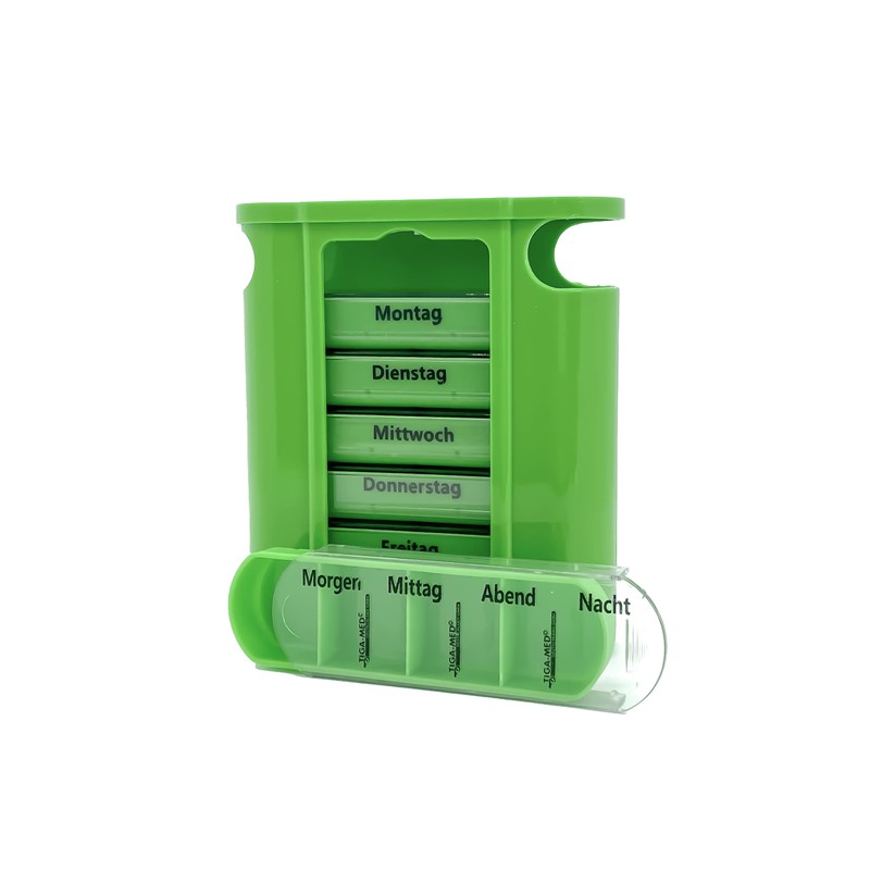 - Each sliding compartment is further divided into 4 times for taking times "morning, noon, evening, night" and a sliding lid prevents the tablets from falling out