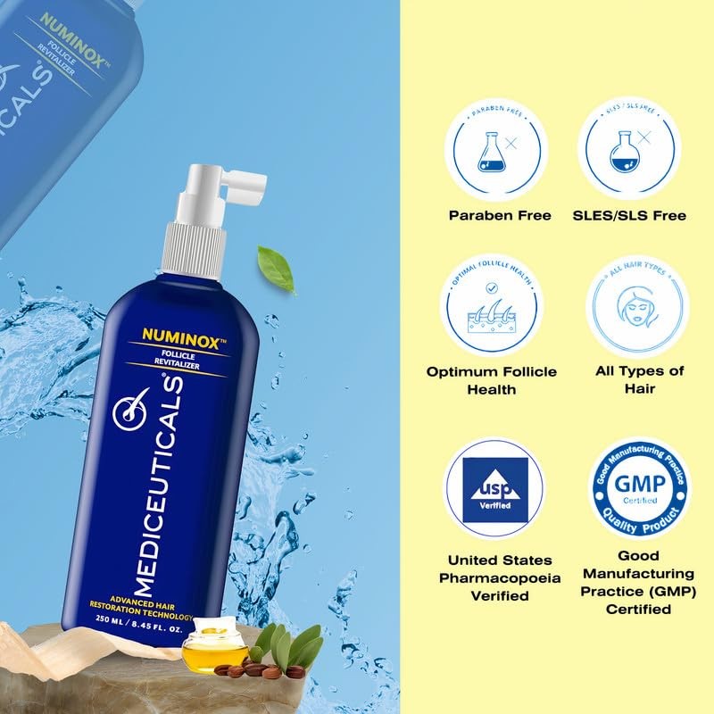 Mediceuticals Numinox - Mediceuticals Follicle Revitalizer 8.45 oz (250 ml) DHT Blocker for Men C DHT Blocker for Women - Sudden Hair Loss - Telogen Effluvium - Hair Follicle and Scalp Stimulator