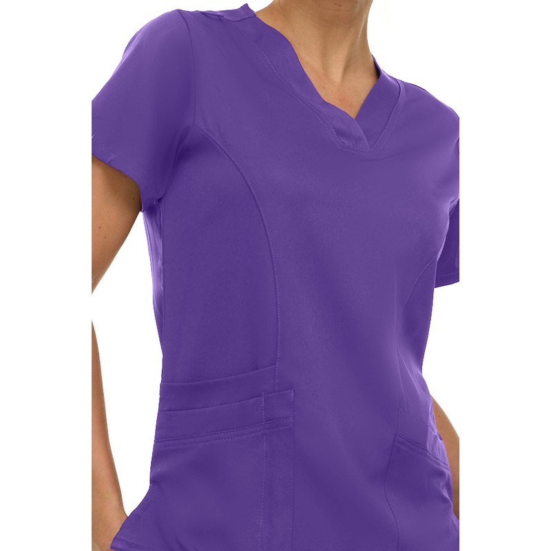 MediChic Women's V-Neck Scrub Top - 3-Pocket, 4-Way Stretch, Comfortable Medical Uniform, Grape Large
