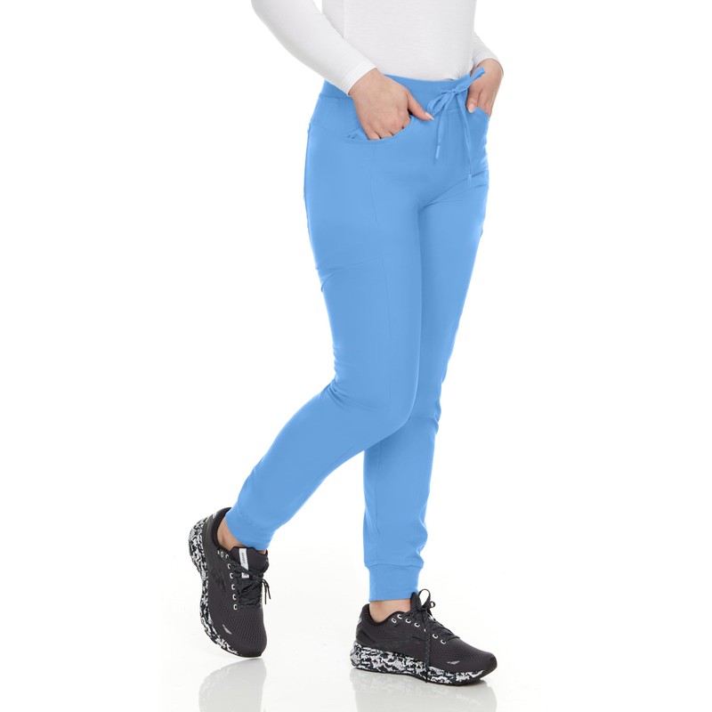 MediChic Womens Ribbed Six Pockets Scrub Joggers Nursing Scrub Pants with 4-Way Stretch Jogger Scrub Bottoms Ceil Blue
