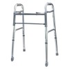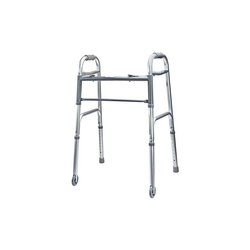 MediChoice Dual-Release Two Button/Folding Walker, Height Adjustable with 3 Inch Wheels, Aluminum, 300 lb. Capacity (1 Each)