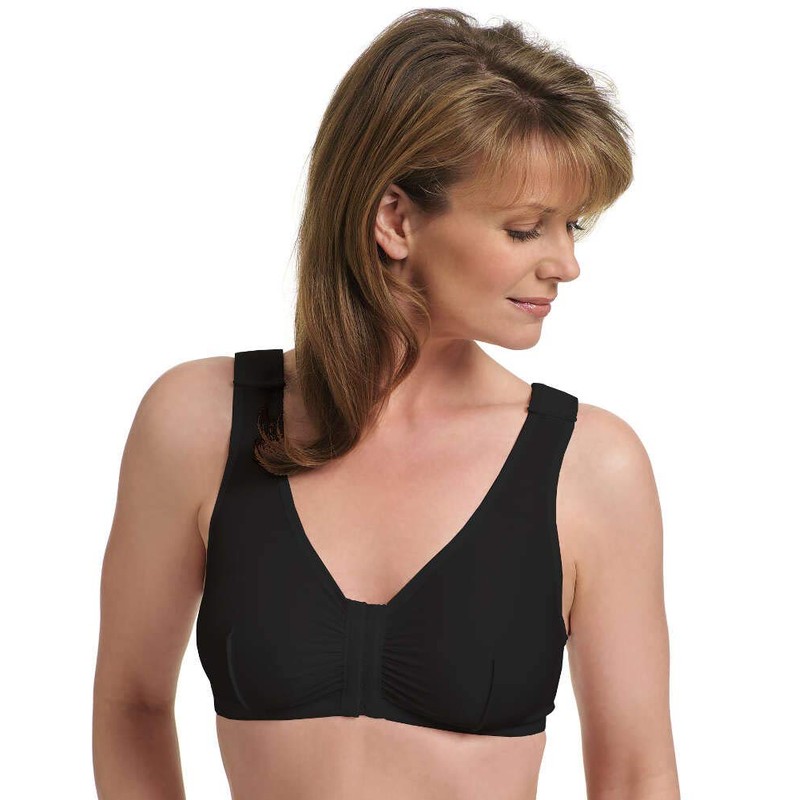 MediChoice Wireless Surgical Bra, Adjustable Strap Front Closure Post Surgery Mastectomy Compression Everyday Support Bra, Size 42, Black
