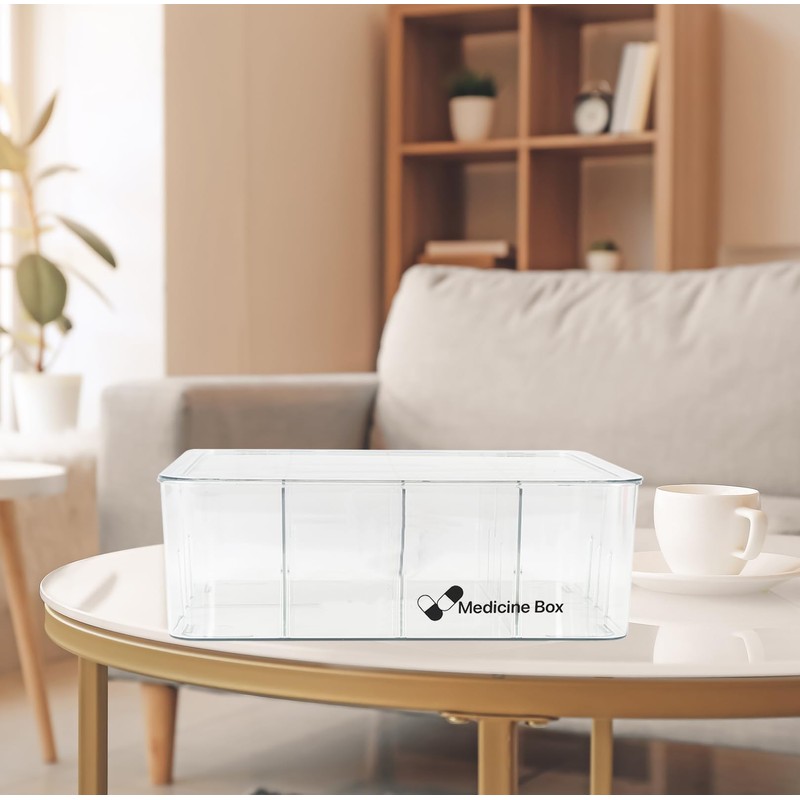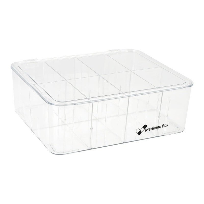 - ADJUSTABLE SIZE COMPARTMENTS:The home medical organizer and storage bin Featuring 8 freely resizable compartments,Removing dividers allows you to also store ointment tubes, drops, allow more room for a certain medications, small medical supplies, first aid supplies and more.