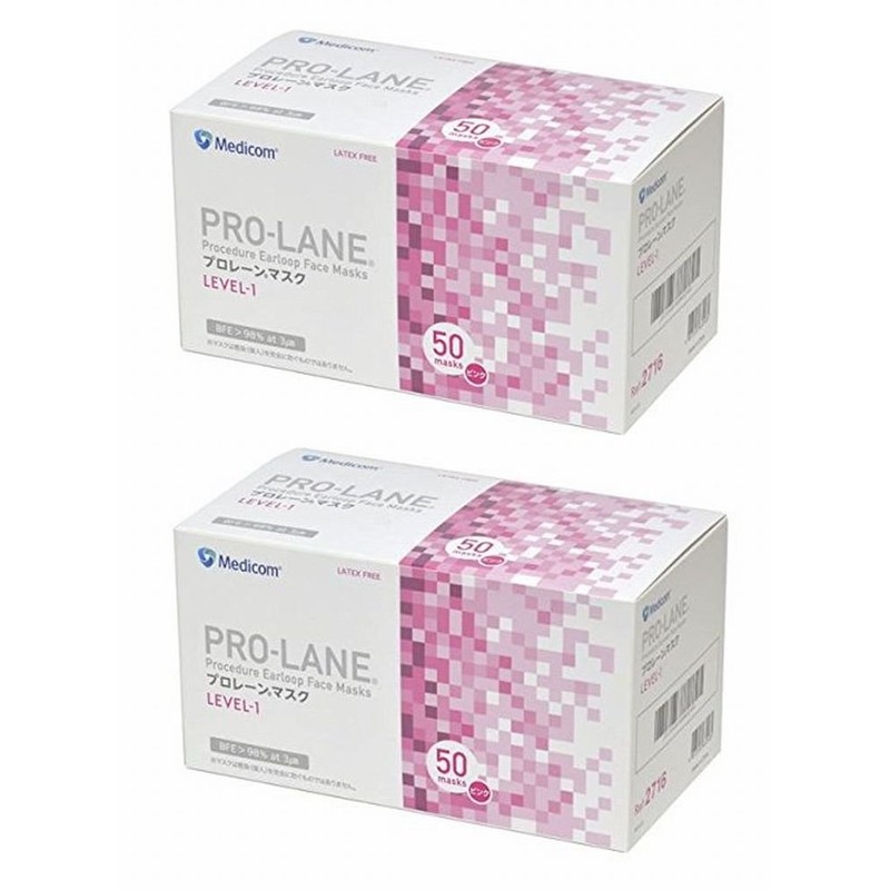 Medicom LEVEL-1 Pro Lane Mask, Pink, 50 Sheets x 2 Boxes