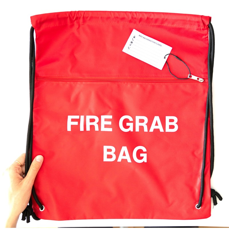 - DESIGNED FOR EMERGENCIES: Bold red design with large “FIRE GRAB BAG” text for instant visibility in fire or evacuation situations.