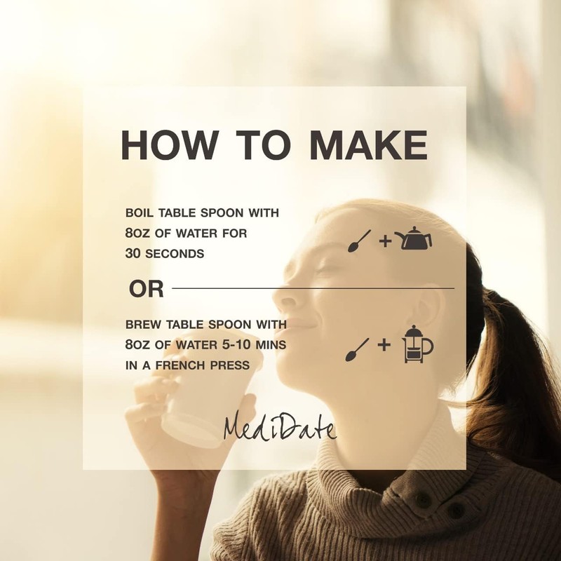 - MediDate has naturally occurring prebiotics, polyphenols, nutrients and is caffein free.