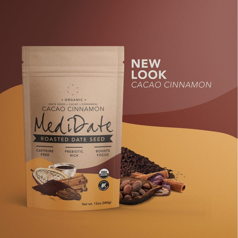 MEDIDATE Coffee Alternative - Roasted Date Seeds + Cacao + Cinnamon - Naturally Occurring Prebiotics | Polyphenols | Caffeine & Acid Free (12 oz. / 25 Servings)