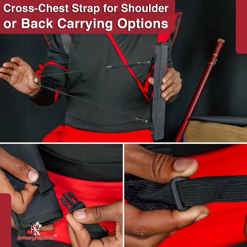 - SECURE AND STYLISH SWORD STORAGE - This 12.25-INCH CARRYING CASE features a hard inner lining to keep your sword in place during travel. Its cross chest strap offers versatility, allowing you to carry it on your shoulder or across your back.