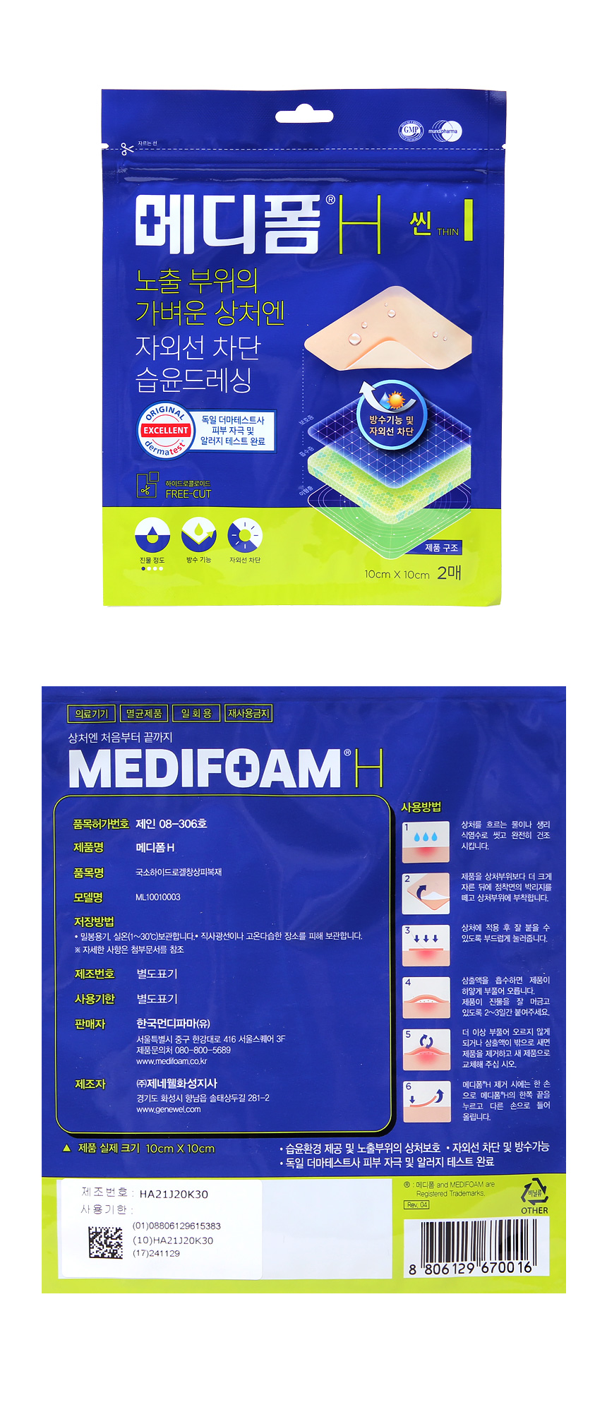 Mediform H Thin 10x10 2 sheets / 메디폼H 씬 10x10 2매