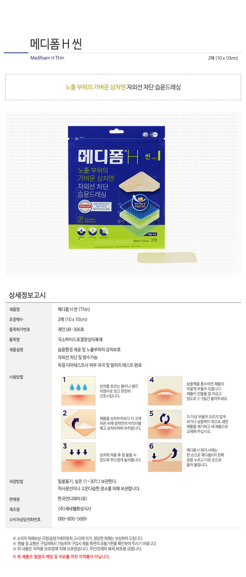 Mediform H Thin 10x10 (2 sheets), removable play band, UV protection, waterproof wet dressing / 메디폼 H 씬 10x10(2매), 잘라쓰는 재생밴드 자외선차단 방수형 습윤드레싱