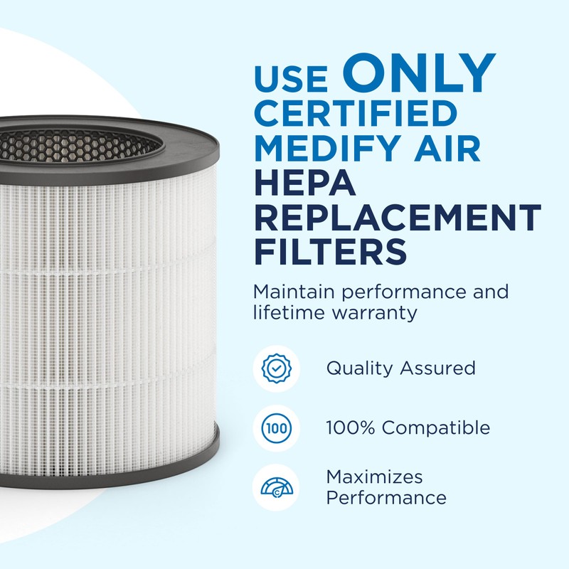 - QUALITY TESTED & BACKED: CARB, ETL, and Energy Star certified. Backed by a USA registered Lifetime Warranty when genuine Medify replacement filters are used. The replacement filter (B07VVF6R5L) lasts 2,500 hours or about 3-4 months