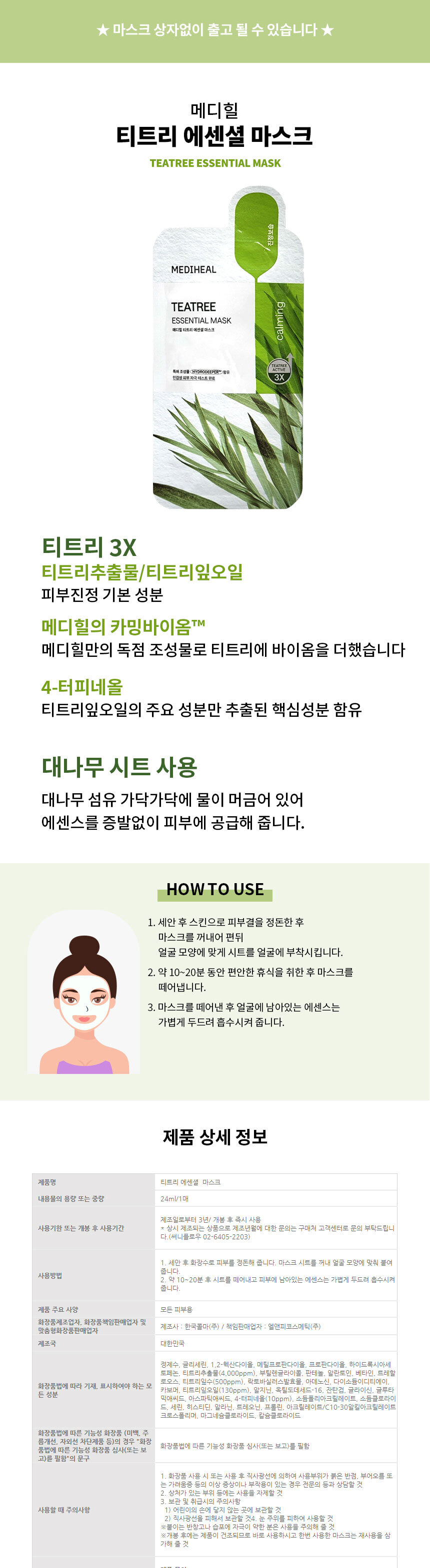 메디힐 티트리 에센셜 마스크 10매 2개 Ss