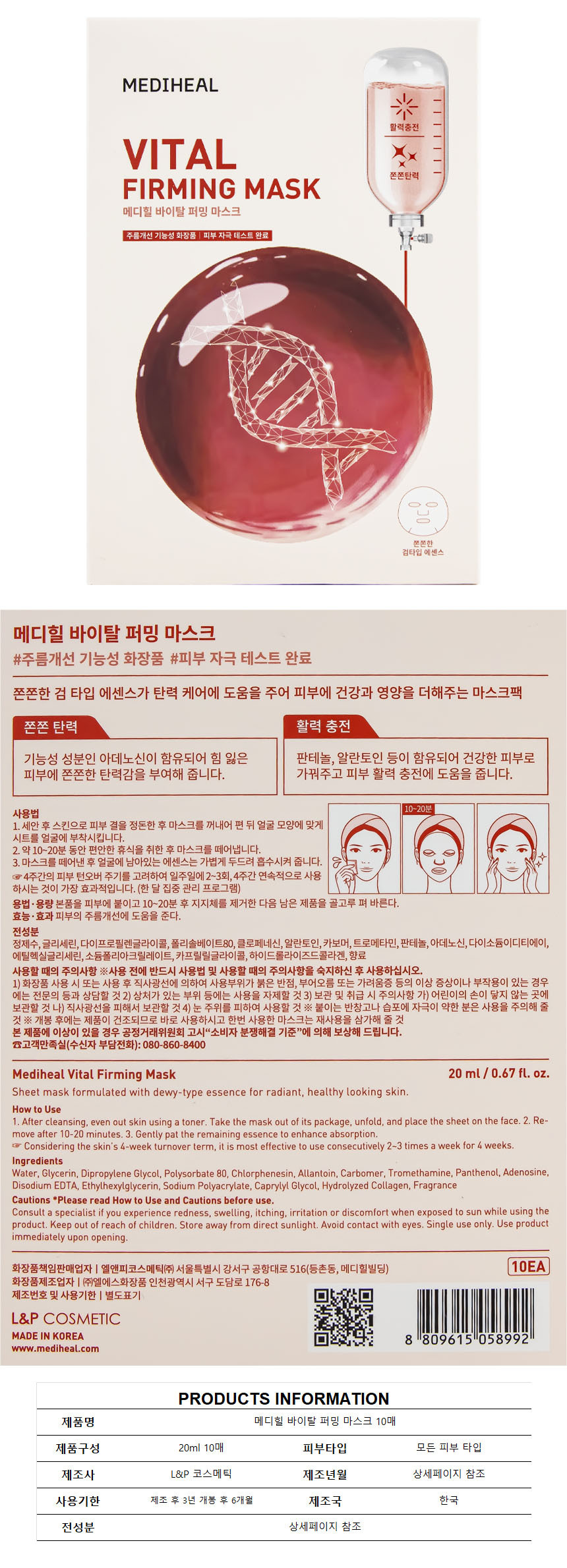 Mediheal Vital Firming Mask 10 sheets / 메디힐 바이탈 퍼밍 마스크 10매