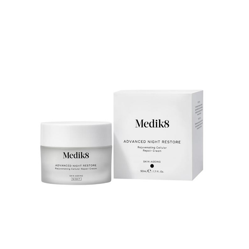 • The Advanced Night Restore Cream includes Medik8’s Midnight Repair Complex™, which features powerful antioxidants such as dragon fruit extract, saskatoon berry, and restoring peptides to encourage cell repair throughout the night.