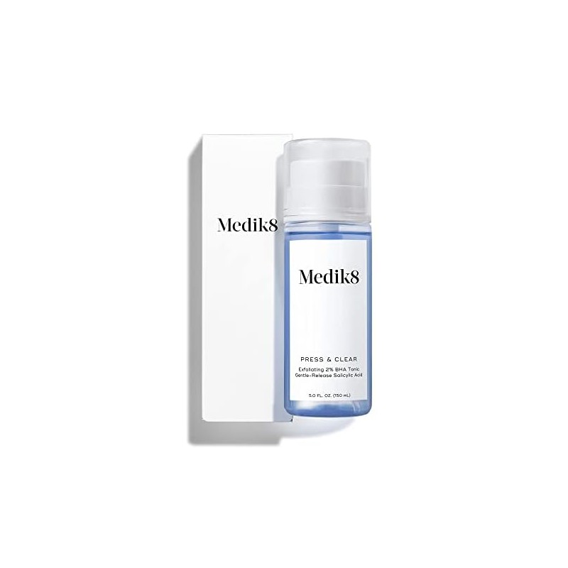 Medik8 Press and Clear - Clarifying Daily Facial Exfoliant - Exfoliating BHA Toner - Gentle-Release Salicylic Acid - Fast Action on Blemishes - 5 oz