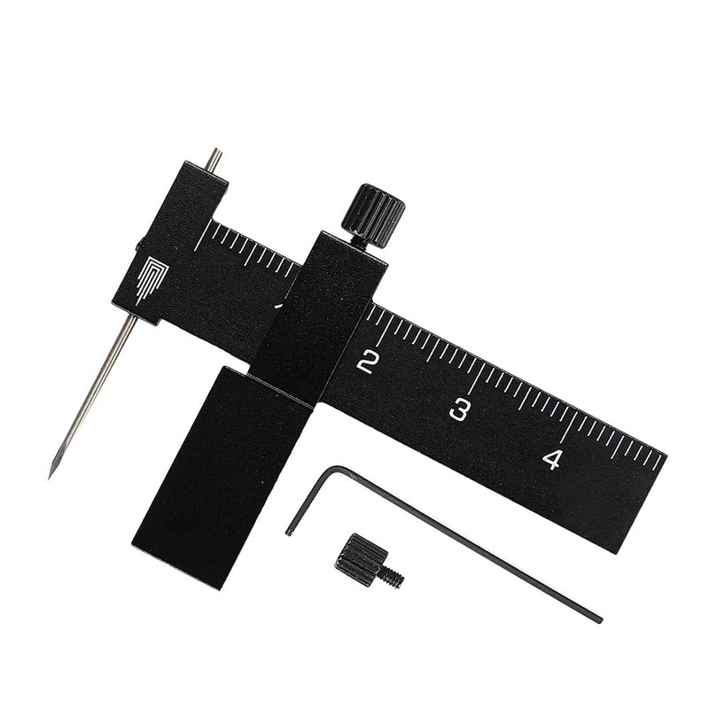 • How to Use: 1: Loosen the top knob and adjust to your desired width to secure it. 2: Loosen the needle side hole with the hex wrench and adjust the length of the needle to fix it. 3: Place the scriber on the area you want to engrave. 4:Carve with straight lines