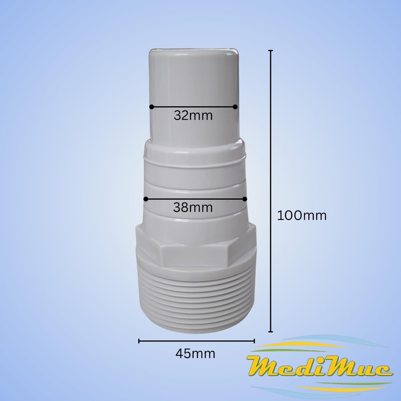MediMuc Pack of 4 Pool Hose Connectors, Hose Nozzle, Pump Connection, Hose Connection for Pool Pumps or Skimmer, Diameter 32/38 mm to 1.5 Inch Hose Barb, White (4)