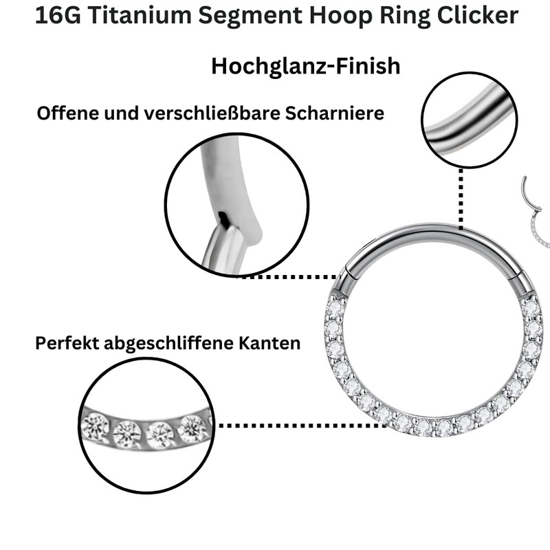Medinah 16G Titanium Nose Piercing Septum Piercing - Universal Hinge Segment for Septum, Nose, Lip, Ear - Gauge 1.2 mm - Nostril Piercing in Gold, Silver & Rose Gold, Titanium, Cubic Zirconia