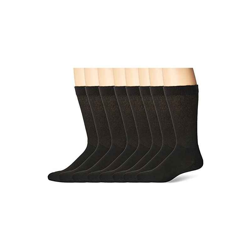 MediPeds Men’s Diabetic Extra Wide Non-Binding Top Crew Socks with COOLMAX Fiber 8 Pairs, Black, Shoe Size: 9-12