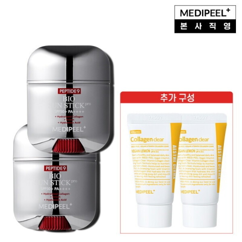 [안티에이징선스틱] 메디필 펩타이드9 바이오 선스틱 프로 19g * 2 + 비건 젤클렌져 15ml * 2