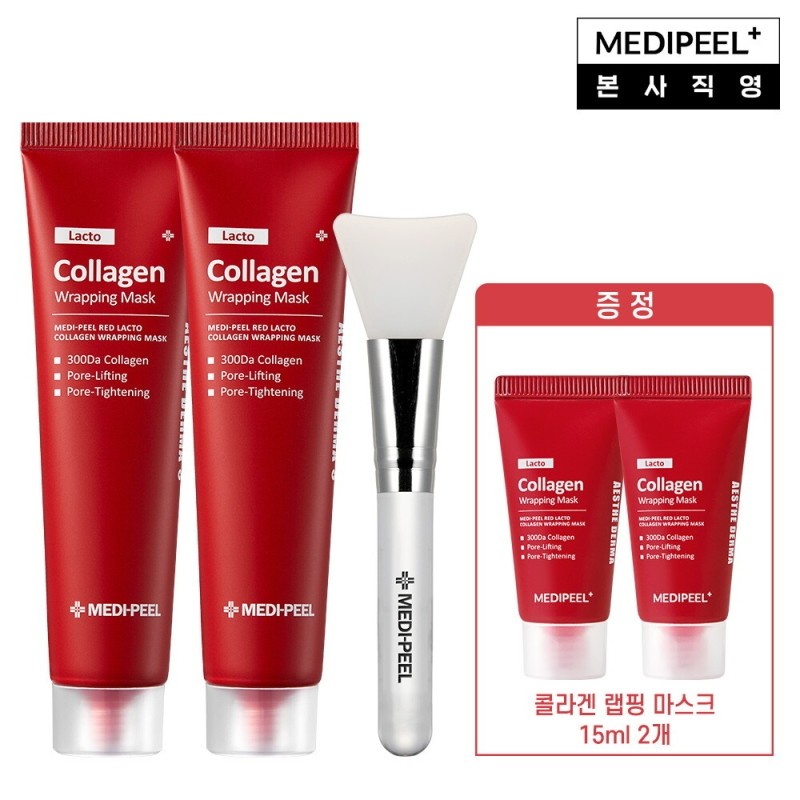 메디필 레드 콜라겐 랩핑 마스크 70ml*2 + 레드 락토 콜라겐 모공 클렌징폼 15ml *2 + 실리콘 브러쉬