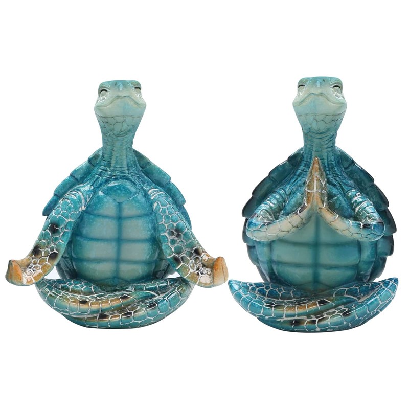 Meditating Turtle Figurine, Sea Turtle Yoga Statue Home Decor, Zen Yoga Resin Figurine Garden/Office Sculpture (2 Pcs)