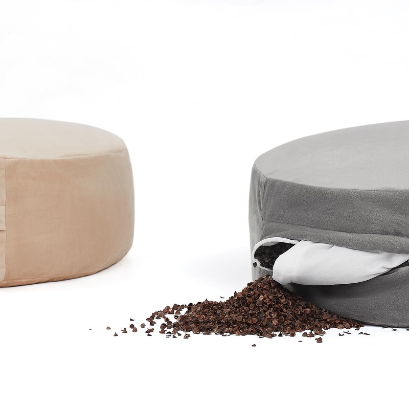 - Customizable Round Meditation Pillow with Buckwheat Fill – The round meditation cushion (16” Diameter x 5” Thick) is filled with buckwheat hulls that mold to your body, providing unparalleled support and alignment. Features a zippered inner bag for adjustable firmness to suit your preferences.
